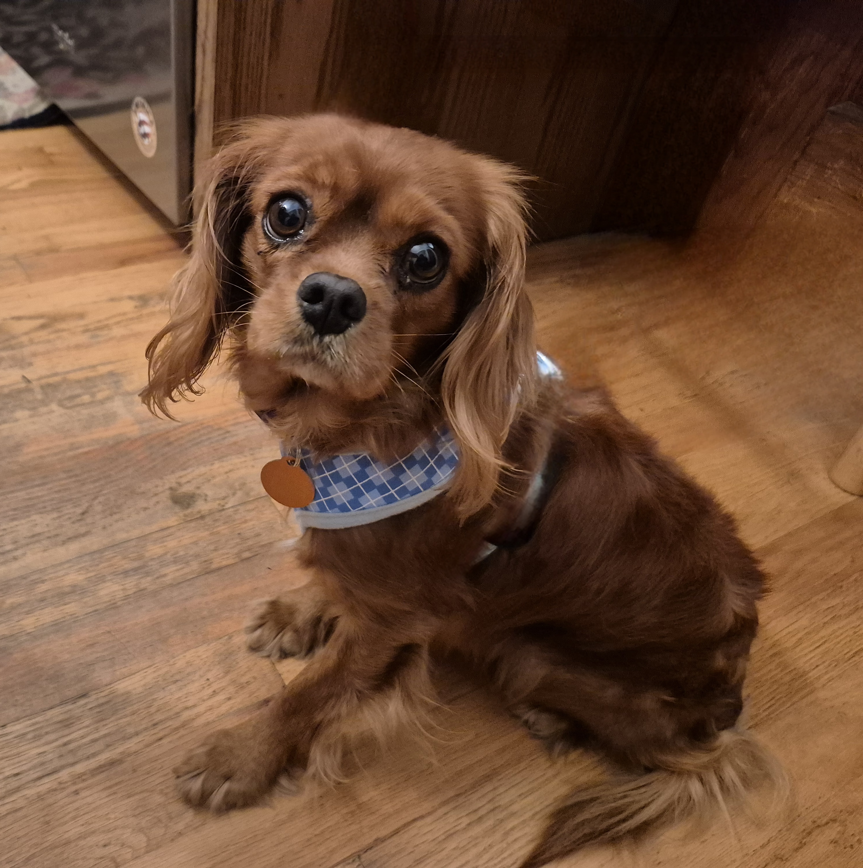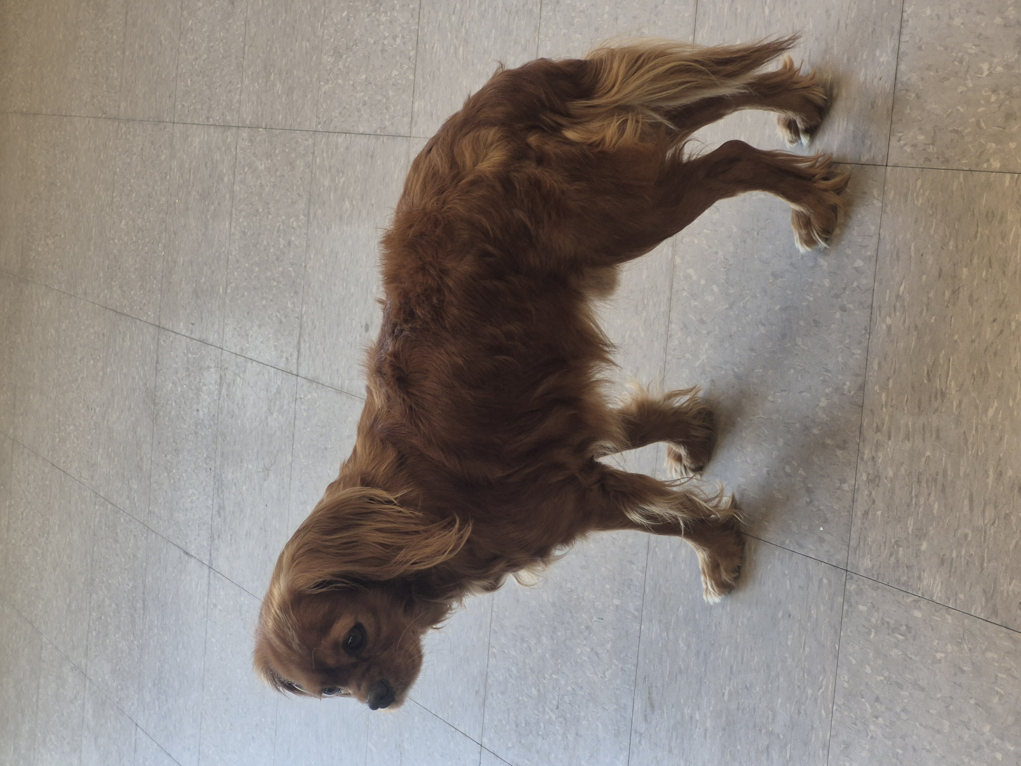 Wilder is a handsome boy! At 14 pounds, he still looks like a puppy even though he's 4 1/2. He is very respectful of his foster siblings that are 11 & 12 years. His personality is quite subdued for being so young. Still needs leash walk training but he's progressed amazingly well in his first month. He is doing very well with potty training. Like all cavaliers I've ever met, he loves a warm lap. When sitting with his humans, when he stares up at you, beware - because you'll want to stay with that stare forever!