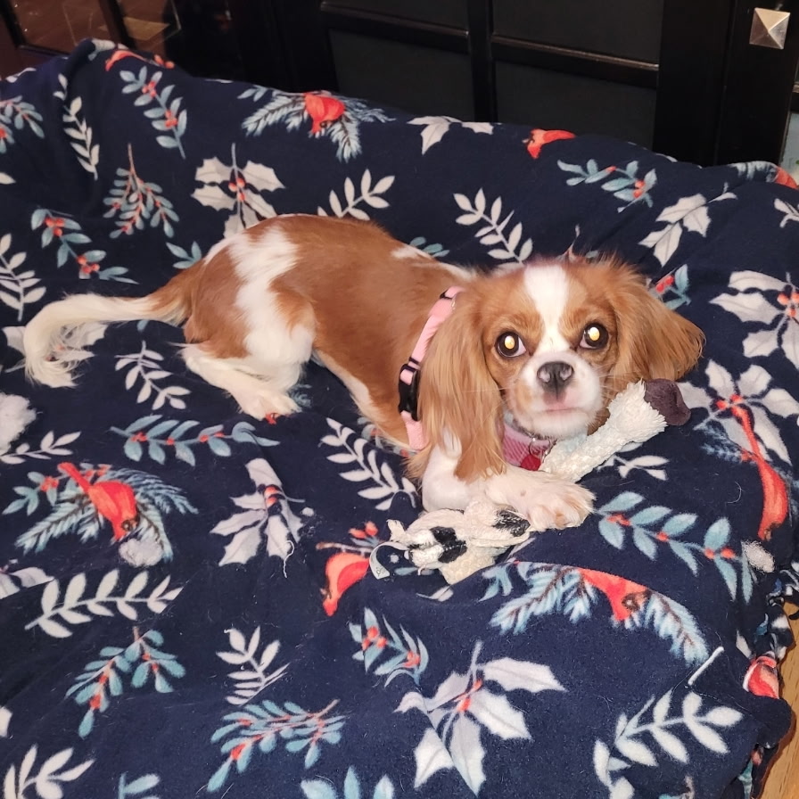 Pixie is a smart, playful, incredibly lovable young pup with so much affection to give. At around a year old, she’s in that perfect stage where she’s full of fun but already showing how trainable and eager-to-please she is. She gets along beautifully with our calm 10-year-old dog and picked up “sit” for treats and mealtimes almost instantly. She’s learning to walk nicely on the leash with her harness, and she responds kindly to strangers who want to say hello. We haven’t had the chance to introduce her to children yet, but based on her gentle, social personality, we believe she’ll do very well with respectful kids. Pixie is doing great with potty training and goes outside regularly when kept on a routine. She rests peacefully in her crate for naps and downtime. If she goes in the crate while she’s still feeling playful, she may protest with a little barking or whining — but as soon as you place a blanket over her crate, she settles right into a cozy nap. As with most one-year-olds, Pixie loves toys but is still learning what counts as a toy and what doesn’t. A bit of puppy-proofing (goodbye, shoes and glasses!) keeps her safe and out of trouble. Pixie is overflowing with love and enthusiasm — she adores snuggling but may need a minute to settle because she is very generous with kisses. With a little guidance as she continues to mature, she’ll make a truly wonderful family dog in a home with or without children or other pets. If you're looking for a sweet, trainable companion with a big heart and a bright future, Pixie may be your girl.