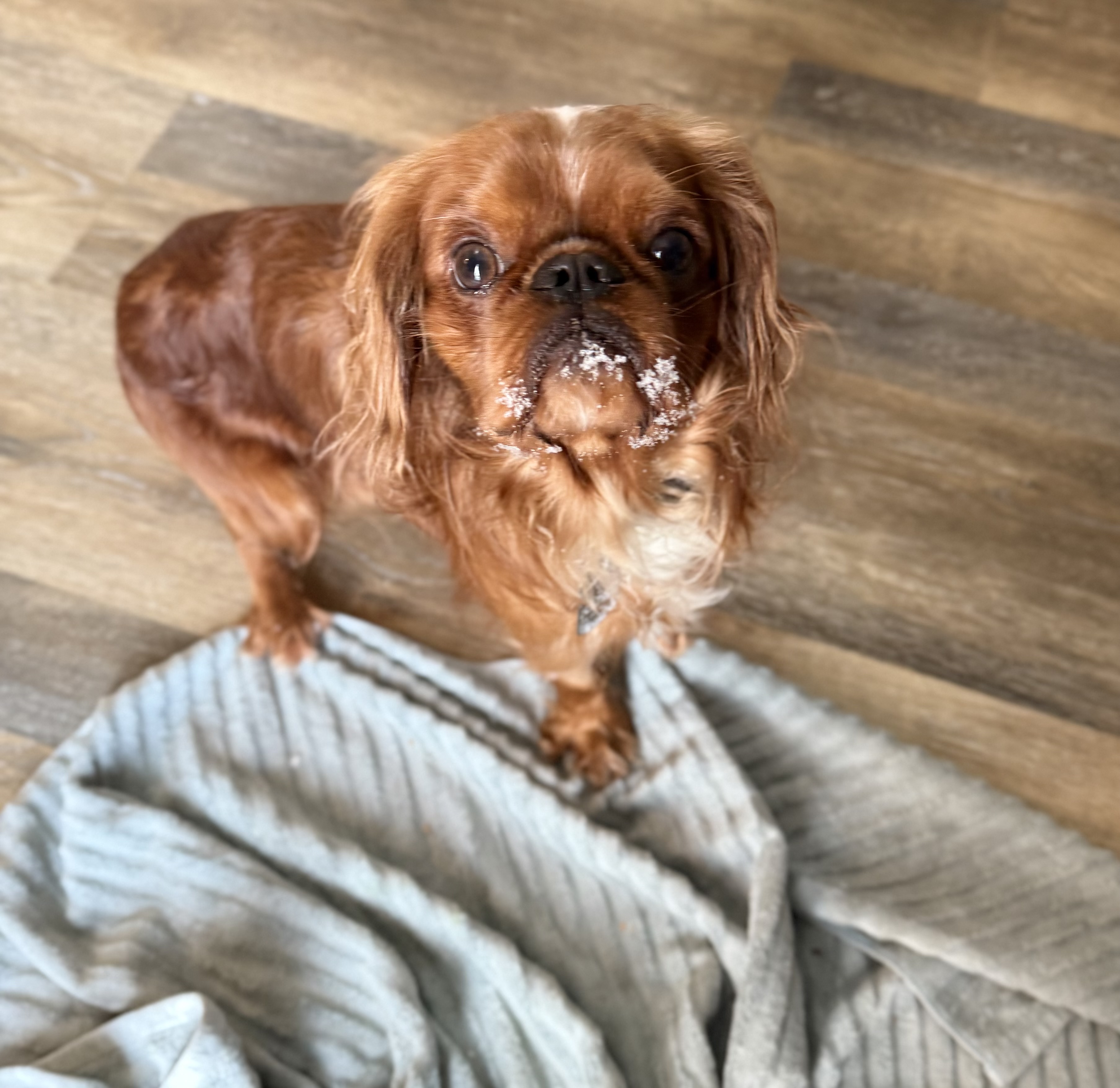 **Adoption pending ** Darla is finally healthy enough for adoption! Are you her perfect human? Darla would love a quiet home with a calm canine sibling and a yard, as she loves being outside in the grass and snow! A new family that will take her for short walks at her pace or in a stroller. She's also a fan of car rides! Her family must have patience for her finicky diet choices (foster home cooks for her) and her still learning that humans are good people.