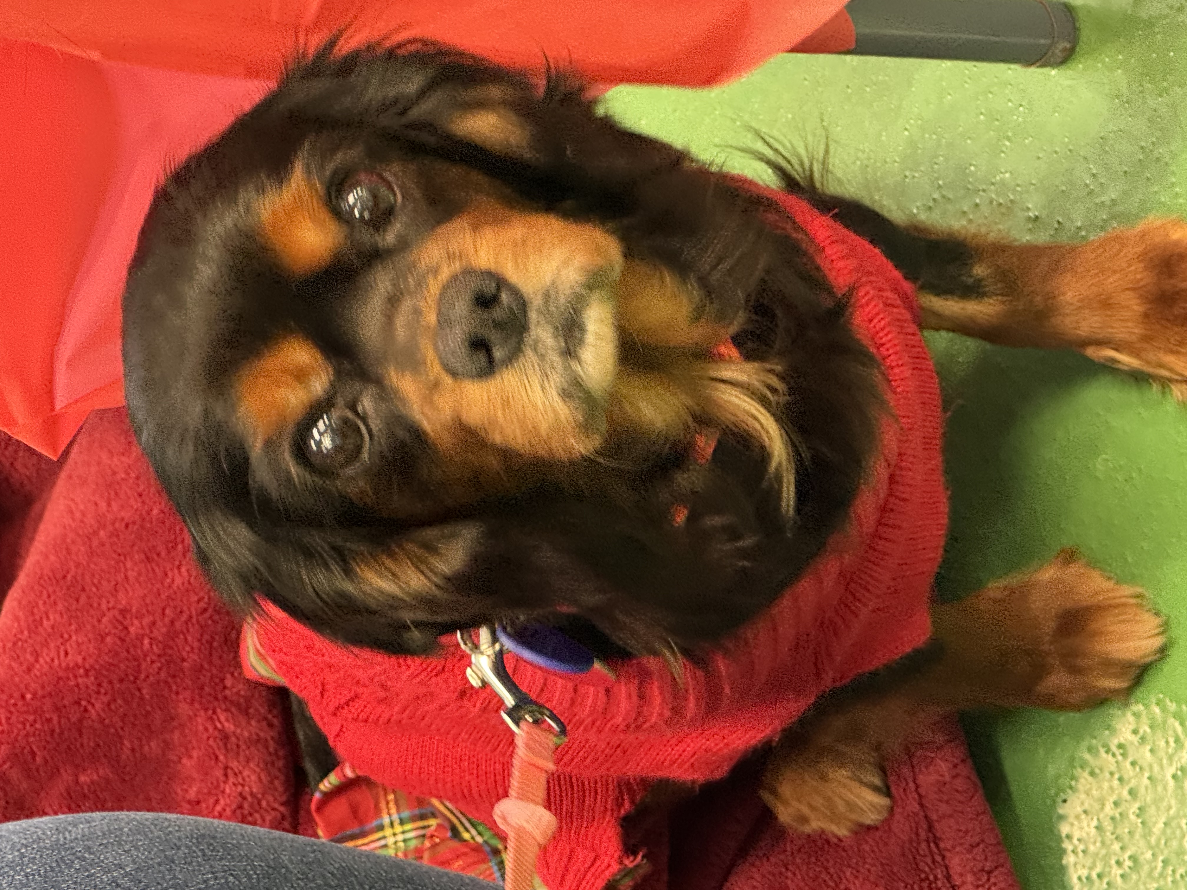 What an appropriate name for this pup! Sweet and mellow but also full of energy. If I didn’t know better, I would say she was around five years old. Maybe keeping up with multiple litters of puppies gave her the stamina to keep up with the younger dogs in her foster home! Mocha has only been with us a few weeks but is comfortable with her three Cavalier siblings, cruising the yard with the pack and curling up nearby when they nap. Even with a couple of naps during the day, she puts herself to bed around 7-8, preferring a comfy fuzzy doughnut bed to the floor, crate or human bed. She is a good eater but needs mostly soft canned food since she had to have many of her teeth removed. Though she might grumble if one of the other dogs tries to stick their nose in her dish, she is usually the first done and then cruises the others’ dishes to look for leftover tidbits. Mocha is learning to sit for treats and if she sees her people waving to her, she will come running. She loves to nap on laps or next to her humans or dog siblings but if she is awake, she will want to keep an eye on you. Never underfoot, she hovers nearby hoping for attention, dropped food, or a treat! As with many Cavaliers, she lost her hearing as she aged, but seems to be open to learning hand signals and from watching the other dogs. Mocha is very friendly and seems to enjoy children as well as any adult with an open lap! She enjoys walks and does well with the leash, watches other people and dogs go by but has not shown any aggression and can easily walk a couple of blocks without slowing down. We think Mocha is so easy-going, she would do well in almost any small household, even with children, but would prefer someone home at least part-time. A fenced yard or access to a safe dog area, particularly if there are children in the home, is very important because of her hearing loss. Another dog would be great, but she would do well as an only dog with the right family. If you have been looking for a sweet Cavalier who has a lot of love to give, please consider applying to adopt Mocha.